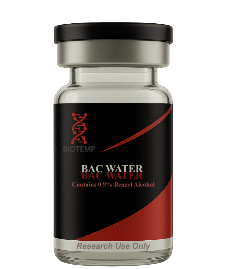 Bacteriostatic Water (BAC Water, 0.9% Benzyl Alcohol) is a laboratory-grade sterile aqueous diluent formulated for bench-scale peptide reconstitution, method development, and solvent-system studies. This USP-grade water contains 0.9% (v/v) benzyl alcohol as a preservative agent to inhibit bacterial growth in multi-dose research applications.